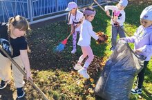 Сегодня дети подготовительной группы детского сада "Ляйсан" очистили от листьев участок детского сада. Настроение у детей было прекрасное и все работали старательно. -