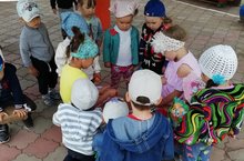 Дети первой младшей группы детского сада " Ляйсан" активно играют на свежем воздухе. Игры в мяч, в прятки, игры в песочнице детям очень нравится.