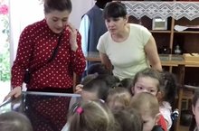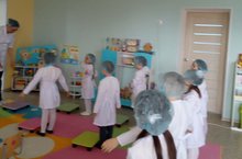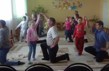 "Миләшкәй" балалар бакчасының мәктәпкә әзерлек төркеменең кызлары әтиләре белән Чыгарылышка бию әзерли.