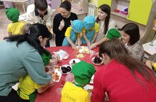В предверии праздника "День Матери" для ребят средней группы прошел кулинарный мастер класс "Научи меня, мама", по приготовлению винегрета. В начале мероприятия рассказали о пользе овощей: свеклы, картофеля, огурцов, лука. После беседы вооружившись разделочными досками и ножами, ребята вместе с мамами приступили к самому интересному - приготовлению винегрета. Конечно же сначала были тщательно вымыты руки и обговорены все правила безопасности. Воспитательница Мингазова Г. И., которая руководила мастер-классом, показала ребятам способы нарезки овощей, приёмы правильного обращения с ножом во время работы. Выяснилось, что у некоторых ребят уже есть небольшой опыт такой работы. Все старались и получали удовольствие от процесса. Когда все овощи были нарезаны, мы приступили к сборке салата. Взяв красивую большую салатницу, дети стали перекладывать в неё порезанные овощи. Заправив винегрет растительным маслом, тщательно его перемешали. Затем ребята приступили к дегустации винегрета. Ребятам очень понравилось готовить.