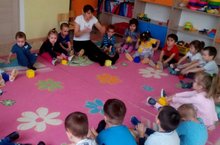 "Миләшкәй" балалар бакчасының икенче кечкенәләр төркеме балалары физкультура эшчәнлегендә.Балалар физик активлыкларын,җитезлекләрен,хәрәкәтчәнлекләрен ныгыталар.