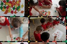В МБДОУ "Миляшкай" в подготовительной к школе группе воспитателями была проведена образовательная деятельность по художественно-эстетическому развитию (аппликация) «Осенний ковер». Данному виду деятельности предшествовала утренняя прогулка, во время которой дошколята совместно с воспитателем рассмотрели опавшие листья с деревьев березы, рябины.Наблюдали за листопадом, бегали по листикам, слушая их шорох.Дети водили хоровод с опавшими листочками, спели полюбившуюся песенку «Разноцветная осень», поиграли в игру «Раз листочек, два листочек».Во время коллективной аппликации воспитанники выбирали нужные листики, определяя их форму и цвет, и наклеивали на бумагу, формируя узор ковра.Дети работали с увлечением и большим интересом. В заключении все любовались своей работой.