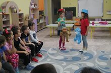 Бүген мәктәпкә әзерлек төркемендә балалар марионетка курчакларын хәрәкәтләндереп үзләре белгән әкиятләрне сөйләп күрсәттеләр.