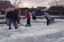 Коллектив белән территорияне кардан арындыру максатыннан, өелеп торган карларны тараттык.