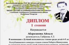 Бакчабызда тәрбияләнүчеләр Роберт Миңнуллинның иҗатына багышланган республика күләм шигырь бәйгесендә катнашып төрле дәрәҗәдәге дипломнарга лаек булдылар. Котлыйбыз!