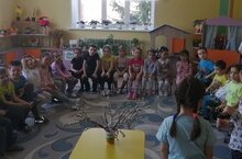 Уртанчылар төркемендә кисеп ябыштыру эшчәнлеге. Чәчәкнең өлешләрен кисеп берләштереп чәчәк ясарга өйрәнделәр. Кайчы белән эшләү күнекмәсен ныгыттылар.