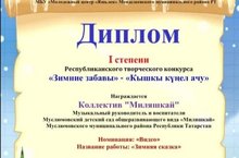 “Миляшкай” балалар бакчасы коллективы Республика күләм үткәрелгән “Кышкы күңел ачу” конкурсында катнашып 1дәрәрҗә диплом белән бүләкләнде.