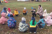 Мәктәпкә әзерлек төркеме саф һавада күңелле, хәрәкәтле уеннар уйныйлар.