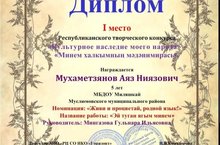 Республика күләм үткәрелгән "Минем халкымның мәдәни мирасы" конкурсында катнашып яулаган уңышларыбыз. Әфәрин.Җиңүчеләрне котлыйбыз.