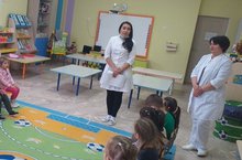 Мәктәпкә әзерлек төркеме балалары врач-педиатр Алия Шәрифҗан кызы белән очраштылар. Алия Шәрифзяновна прививкаларның әһәмияте, кирәклеге турында таныштырды, буклетлар өләште.