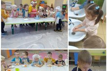 Мөслим "Миләшкәй" балалар бакчасының икенче кече төркемдә тәрбиячеләр һәм ата-аналар, төрле яшелчәләр куллануга зур игътибар бирәләр. Балалар өлкәннәр белән бергә гадәти яшелчәләр популяр булсын һәм күңелсезлек тоймасын өчен нәрсә эшлэргә кирәклеге турында фикер алышалар. Ә моның өчен бераз фантазия кирәк, чөгендер салаты "Кызыл калфак" ка, ә кишер салаты күңелле "смайлик"ка верелергә мөмкин. Бездә балалар белән тәмле, витаминлы "смайлик" лар салаты әзерләдек һәм барысында сыйладык.