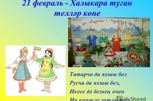 Туган телләр һәм халыклар бердәмлеге елы. Патриотизм-Ватанга мәхәббәт, аңа тугрылык, аның өчен җаваплылык һәм горурлык, аның иминлеге өчен хезмәт итү, аның байлыкларын саклау һәм арттыру теләге - мәктәпкәчә яшьтә формалаша башлый. Үз-үзеңә ышаныч, үз Ватаның тарихына һәм мәдәниятенә, аның дәүләт символикасына ихтирамсыз, тулы кыйммәтле шәхес тәрбияләү мөмкин түгел. Барлык элементларда да (герб, флаг, гимн) тирән мәгънә салынган: алар дәүләтнең барлыкка килү тарихын, аның структурасын, максатларын, принципларын, милли гореф-гадәтләрен, хуҗалык һәм табигать үзенчәлекләрен чагылдыралар.