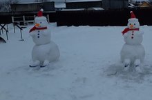 Коллектив детского сада «Миляшкай» слепили снежные фигуры Деда Мороза, Снегурочки и сказочные герои.