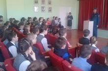 Иске Карамалы авылы янгын сүндерү бүлеге командиры Вәлиев И.И. 1-11 нче класс укучылары белән очрашты. Ул язгы су басулар, ташу вакытында куркынычсызлык кагыйдәләре буенча профилактик әңгәмә үткәрде./Встреча с командиром отделения отдельного противопожарного поста с.Старые Карамалы Валиевым И.И. Он провел с учащимися 1-11 классов профилактическую беседу по теме "Правила поведения во время весеннего половодья. Меры безопасности на льду весной, в период паводка"