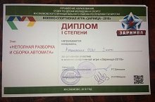 "Аҗаган-2018" уенында "Автомат сүтеп-җыю" этабында Күбәк урта мәктәбе яшь армиячеләре 1 нче дәрәҗә Дипломга ия булдылар/В военно - спортивной игре "Зарница-2018" юнармейцы Кубяковской СОШ в этапе "Неполная разборка и сборка автомата" заняли 2 место и награждены дипломом I степени (рук. Ханнанов Ф.Г.)