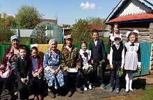 "Ветеран" акциясе кысаларында 8 нче класс җитәкчесе Фатихова Э.А. укучысы Низамова Р.А. белән Яңа Карамалы авылындагы тыл ветераннары белән очрашты. Алар тыл ветераннарына үзләренең теләкләрен җиткерделәр, котлау открыткасы тапшырдылар.