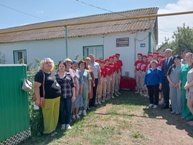 Яшь армиячеләр Украинада махсус хәрби операциядә батырларча һәлак булган авылдашыбыз Илгиз Фәттәхетдинов истәлегенә Иске Карамалыда ул тормыш иткән йорт диварына элмә такта кую тантанасында 15.06.2023