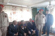 Бөек Ватан сугышы ветераны Госманов Салих Госман улын якынлашып килүче Җиңү бәйрәме белән котлауда юнармиячеләребез һәм аларның җитәкчеләре Ханнанов Ф.Г.та катнашты/В поздравлении ветерана Великой Отечественной войны Гусманова Салиха Гусмановича с наступающим праздником Победы приняли участие юнармейцы и их руководитель Ханнанов Ф. Г.