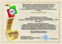 «Мәктәп планетасы» иҗади студиясе - «Бала хокук даирәсендә» мәгълүмати - социаль видеороликлар республика конкурсында катнашып, сертификатка ия булды/Творческая студия «Школьная планета» - участник Республиканского конкурса информационно-социальных видеороликов «Ребенок в мире прав»