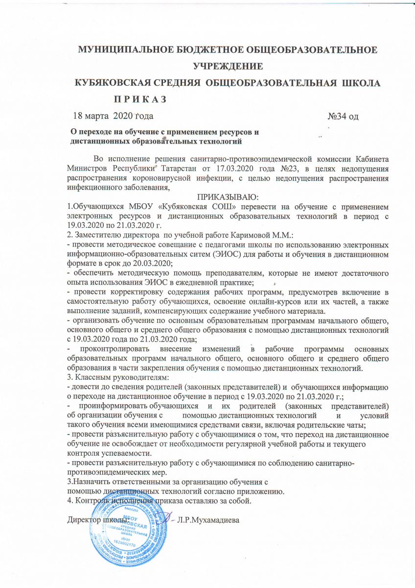 Приказ «О переходе на обучение с помощью дистанционных технологий»