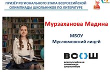 Ученица 11 класса Мурзаханова Мадина - призёр регионального этапа Всероссийской олимпиады школьников по литературе. Учитель- Ахметшина Чулпан Тагировна. Поздравляем!