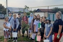 7а сыйныфы укучылары "Яшел Мөслим" акциясенә кушылып, Банк урамындагы агачларга су сиптеләр