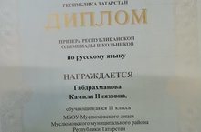 Ученица 11а класса Габдрахманова Камиля стала призером регионального этапа республиканской олимпиады школьников по русскому языку. Учитель Халиуллина Л.И.. Поздравляем!