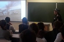 "Куркынычсызлык атналыгы" кысаларында 8 нче сыйныф укучылары өчен ДАИ хезмәткәре Бикмурзин Р.Г. катнашында "Юлларда сак булыгыз!" темасына тәрбия сәгате үтте. Руслан Галимҗанович юл йөру кагыйдәләре, Мөслим районында, республикада килеп чыккан юл фаҗигаләре белән таныштырды. Темага кагылышлы видеороликлар тәкъдим итте. Укучыларны юлларда сак булырга өндәде.