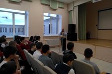 30 ноября во всех классах прошли Уроки нравственности на тему “Мы в ответе за свои поступки». Перед учащимися 8-11 классов выступила майор внутренних дел, исполняющий обязанности начальника штаба Балабанова Лилия Кашбулловна. Учащиеся 1-2х классов посмотрели мультфильм "Водяная" по мотивам сказки Г.Тукая. По увиденному проанализировали поведение мальчика, что брать чужое - это плохо. Также на встречу с детьми пришла старший инспектор по делам несовершеннолетних Салихова Л.З., которая ознакомила детей с видами наказания несовершеннолетних за воровство.