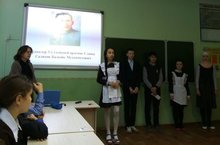 Для учащихся 6-7 классов учительница истории Ахметгалиева Р.А. и юные экскурсоводы организовали заочную экскурсию в мемориальный комплекс с.Муслюмово. Они ознакомили учащихся с Героями Муслюмовского района. Мероприятие было приурочено Дню Героев Отечества.