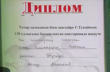 "Син Тукайны беләсеңме?" 28.04.2016 27 нче апрель көнне 6а һәм 6б сыйныфлары өчен “Ә син Тукайны беләсеңме?” дигән уен- викторина үтте. Уен барышында Тукай оныклары (6а) һәм Кечкенә Апуш (6б) командалары бөек шагыйребез Г.Тукайның тормыш юлы, иҗаты буенча сорауларга җавап бирделәр. Уен барышында Тукай оныклары командасы Тукай иҗатын белүләрен исбатлап, җиңү яуладылар. Әлеге чараны татар теле һәм әдәбият укытучысы Сафина Л.Я үткәрде.