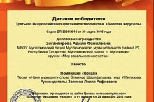 "Золотая карусель" 27.03.2016 Ученица лицея Зигангирова Адиля стала победителем Третьего Всероссийского фестиваля творчества "Золотая карусель". Подготовила победителя учитель музыки, руководитель кружка "Мир вокального искусства" Заянова Л.Р.. Поздравляем!!!