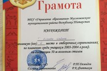 Сегодня в бассейне "Нептун" прошли отборочные соревнования по плаванию среди учащихся 2003-2004 года рождения. Результаты участия по лицею: Аглиев Ильдан(5а) - III место на дистанции 50м вольным стилем, команда лицея в эстафете 4*50м вольным стилем - II место. В итоге команда МБОУ Муслюмовский лицей заняла II место. Молодцы!!!