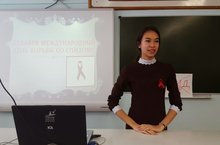 "Мы - против СПИДа!" 02.12.2015 Учащиеся 8а класса провели профилактическую акцию «Мы против СПИДа!», посвященной дню борьбы со СПИДом в рамках профилактической антинаркотической акции «Знать, чтобы жить!» На протяжении акции ученики и учителя участвовали в социалогическом анкетировании "Что Вы знаете о СПИДе?". Одновременно на переменах проходило выступление агитбригады "Здоровый образ жизни - что это значит?", которая приглашала всех учащихся в путешествие по стране, где воцарился здоровый образ жизни. Участники приглашали побывать на разных станциях, где встречались с интересными людьми и задавали вопросы. Нетрадиционная форма проведения мероприятия, позволяла обратить внимание молодежи на проблему больных СПИДом и выразить сочувствие в адрес больных страшной болезнью.