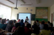 “ФГОС таләпләрен тормышка ашыруда татар теле һәм әдәбияты укытучысының һөнәри компетентлыгы” 15.08.2015 14 нче август көнне Мөслим лицеенда “ФГОС таләпләрен тормышка ашыруда татар теле һәм әдәбияты укытучысының һөнәри компетентлыгы”темасына район татар теле һәм әдәбияты укытучыларының август конференциясе кысаларында секция занятиесе үтте. Педагогика фәннәре кандидаты, ТР Мәгарифне үстерү институтының әйдәп баручы фәнни хезмәткәре Мозаффарова М.Г. белем бирүдә федераль дәүләт стандартларын гамәлгә куюга әзерлек чорында, гомуми белем бирү оешмаларында татар теле һәм татар әдәбиятын укыту мәсьәләләре, норматив–хокукый документлар, танып белү эшчәнлеге оештырылуны эффектив итә торган дәрес структуралары белән таныштырдырды.