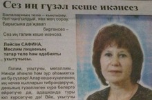 В газете "Сельские огни" напечатана статья учителя татарского языка и литературы нашего лицея Сафиной Л.Я. об учителе начальных классов лицея Ивановой С.А. В газете "Серебряный колокольчик" напечатана статья Сафиной Л.Я., а также её учениц, учащихся 6б класса Акмаловой Э. и Салямовой Р.