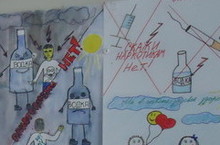 Сегодня в пришкольном лагере провели два конкурса: конкурс рисунков на асфальте на тему "Мы за мир" и конкурс рисунков на тему "Мы против курения и алкоголя".