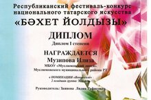 Лицейның җыр түгәрәгенә йөрүче,1 нче сыйныфта белем алучы Мөҗипова Илиза Яр Чаллы шәһәрендә узган Республикакүләм "Бәхет йолдызы" фестиваль- конкурсында катнашып, 1дәрәҗә диплом белән бүләкләнде. Житәкчесе: Заянова Лилия Рафисовна. Уңышларыгыз белән котлыйбыз!