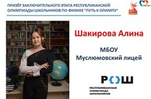 Ученица 11 класса Шакирова Алина - призёр заключительного этапа республиканской олимпиады школьников по физике "Путь к Олимпу". Учитель- Зарипов Э.Ф. Поздравляем!