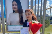 "Ел укучысы - 2023" титулына ия булган 10нчы сыйныф укучысы Алинә Шакированың фотосы "Хезмәткә дан" скверында урын алды.