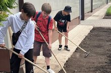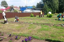 Хезмәт һәм ял лагерендә укучылар мәктәп янын чүп үләннәреннән арындыралар һәм ял да итәләр.