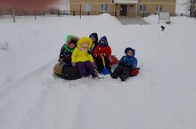 Мәктәпкәчә тәрбия төркемендәге балалар кышкы көннәрне саф һавада уздыра, чаңгы-чана шуа