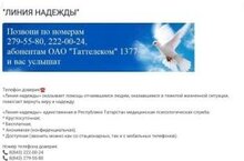 Профессионально: Помощь оказывают только опытные подготовленные специалисты.Телефоны доверия в Татарстане: