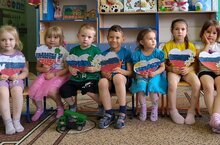 Дошкольники сделали аппликацию-сердечко в виде российского флага.
