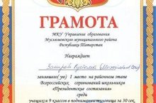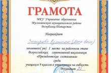 Ученик 9 класса Закиров Р.И. занял 1 место на районном этапе Всероссийских соревнований школьников "Президентские состязания" среди учащихся 9 классов в поднимании туловища за 30 сек. Результат 33 раза.