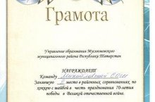 Сегодня на базе Муслюмовская школа №2 прошли соревнования в честь празднования 70-летия победы в Великой Отечественной войне. Учащиеся нашей школы заняли 2-ое место.