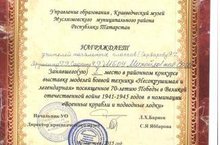 Учителя начальных классов Сарварова Р.Г., Яруллина Г.Р., Сафина Ч.Р. заняли первое место в районном конкурсе выставки моделей боевой техники "Несокрушимая и легендарная", посвященном 70-летию Победы в Великой отечественной войне 1941-1945 годов в номинации "Военные корабли и подводные лодки".