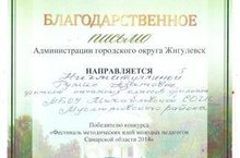 Учитель начальных классов филиала МБОУ Михайловская СОШ-Ташлиярская НОШ Нигматуллина Р.А. с 22 октября по 23 октября 2014 года приняла участие и является победителем в фестивале методических идей молодых педагогов в Самарской области.Она выступила с презентацией на тему "Использование виртуального путешествия на уроках". Награждена благодарственным письмом, сертификатом, ценным подарком-телевизором.Желаем Румии Азатовне творческих успехов в работе.Сертификат Нигматуллина