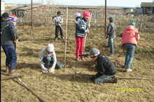 Экологик максатларны истә тотып, бүген укучылар мәктәп ишегалдын чистарттылар: тырмаладылар һәм чүптән тазарттылар. Өмәдән соң укучылар тәмле итеп көндезге аш ашадылар.