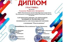 Михайловка урта мәктәбенең мәктәпкәчә төркем педагогы Мингазетдинова Ч.Р. халыкара анимация көненә багышланган "Мин - яшь мультипликатор" дигән региональ конкурста катнашты.Бу аныӊ беренче уңышлы тәҗрибә. Афәрин!